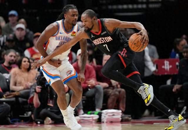 火箭这边史密斯强势反弹再拿17分,但杜兰特23中7,三分5中0确实投篮拉胯,得到19分7板3助3断,申京14分13板5助。考虑到双方都在针对彼此的核心,杜兰特和申京表现尚可。火箭最大的问题还是替补,谢泼德最近撞墙非常低效,今天又是10中3命中率拿7分,投篮犹犹豫豫完全没有自信心了。雨姐今天打得还行,拿到5分1板1助攻,但末节乌度卡不怎么使用。亚当斯一如既往的稳拿6分11板2帽。